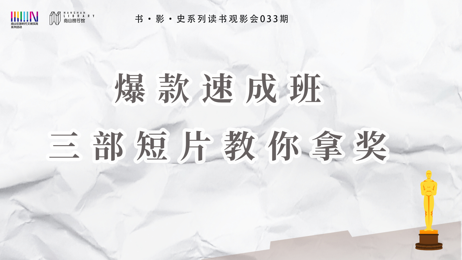 活动主题:《爆款速成班:三部短片教你拿奖》